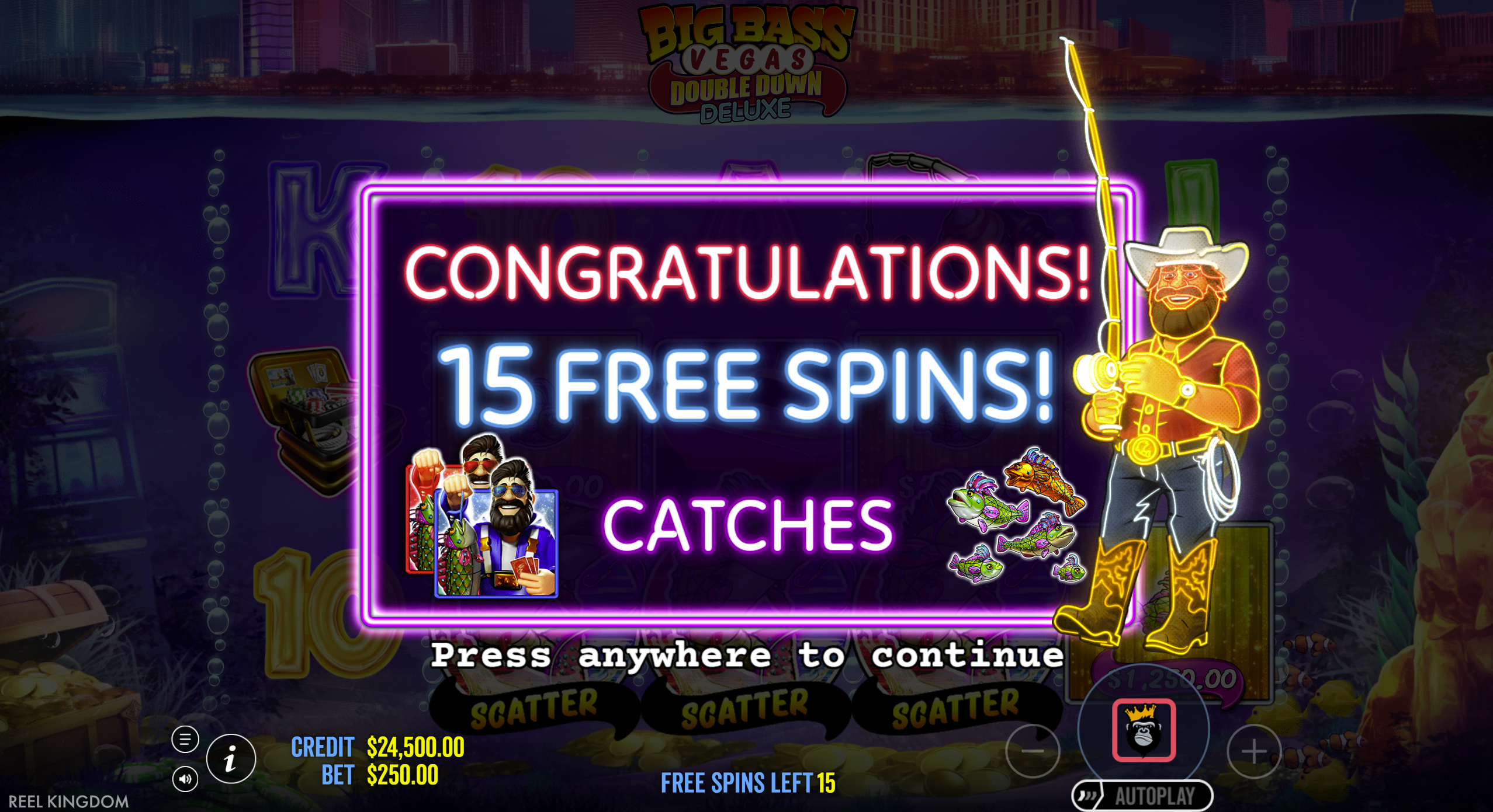 • Theme: Fishing meets Las Vegas bright neon, reels of symbols like boats, fishing gear, fish & more :contentReference[oaicite:4]{index=4}